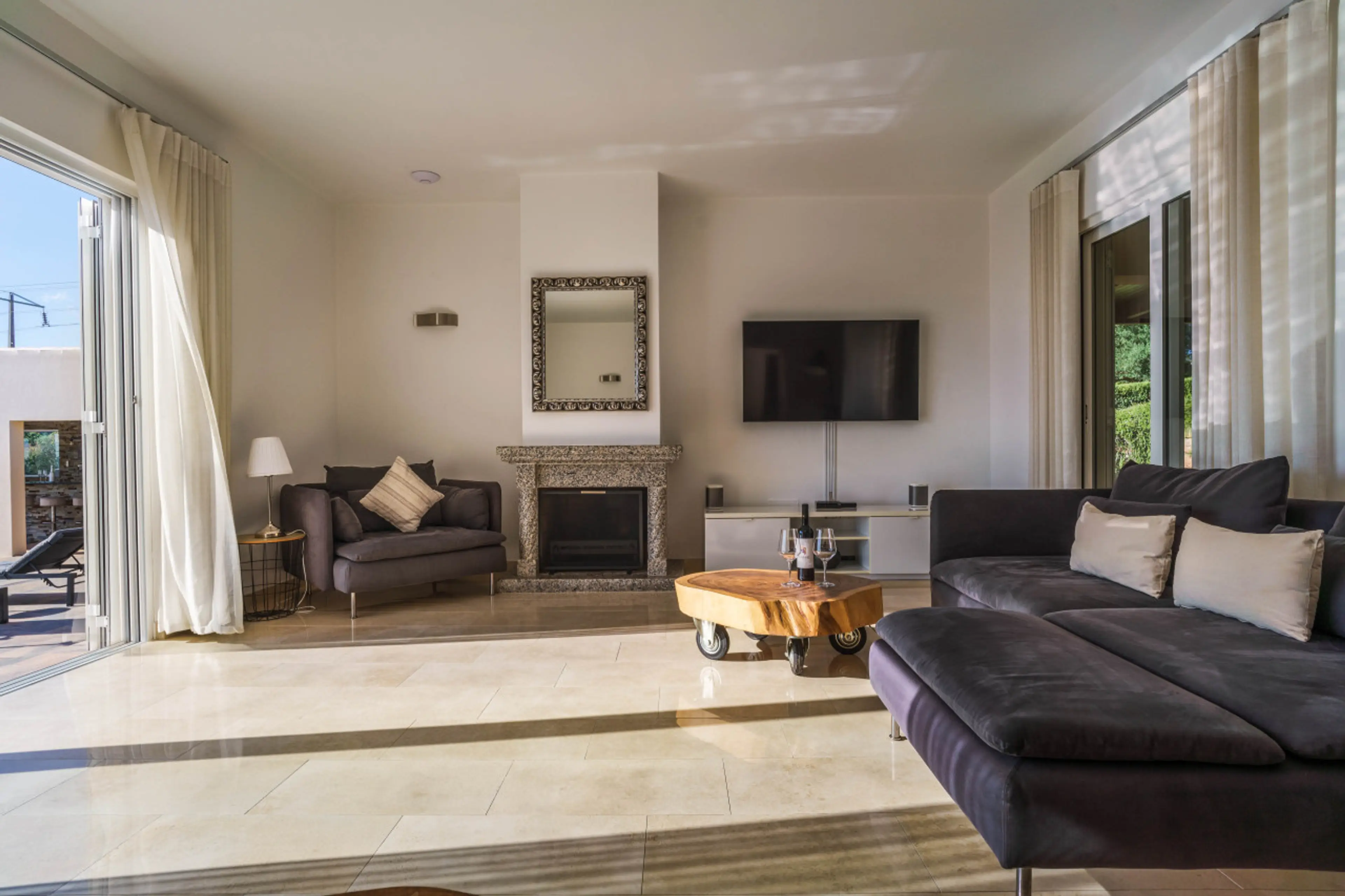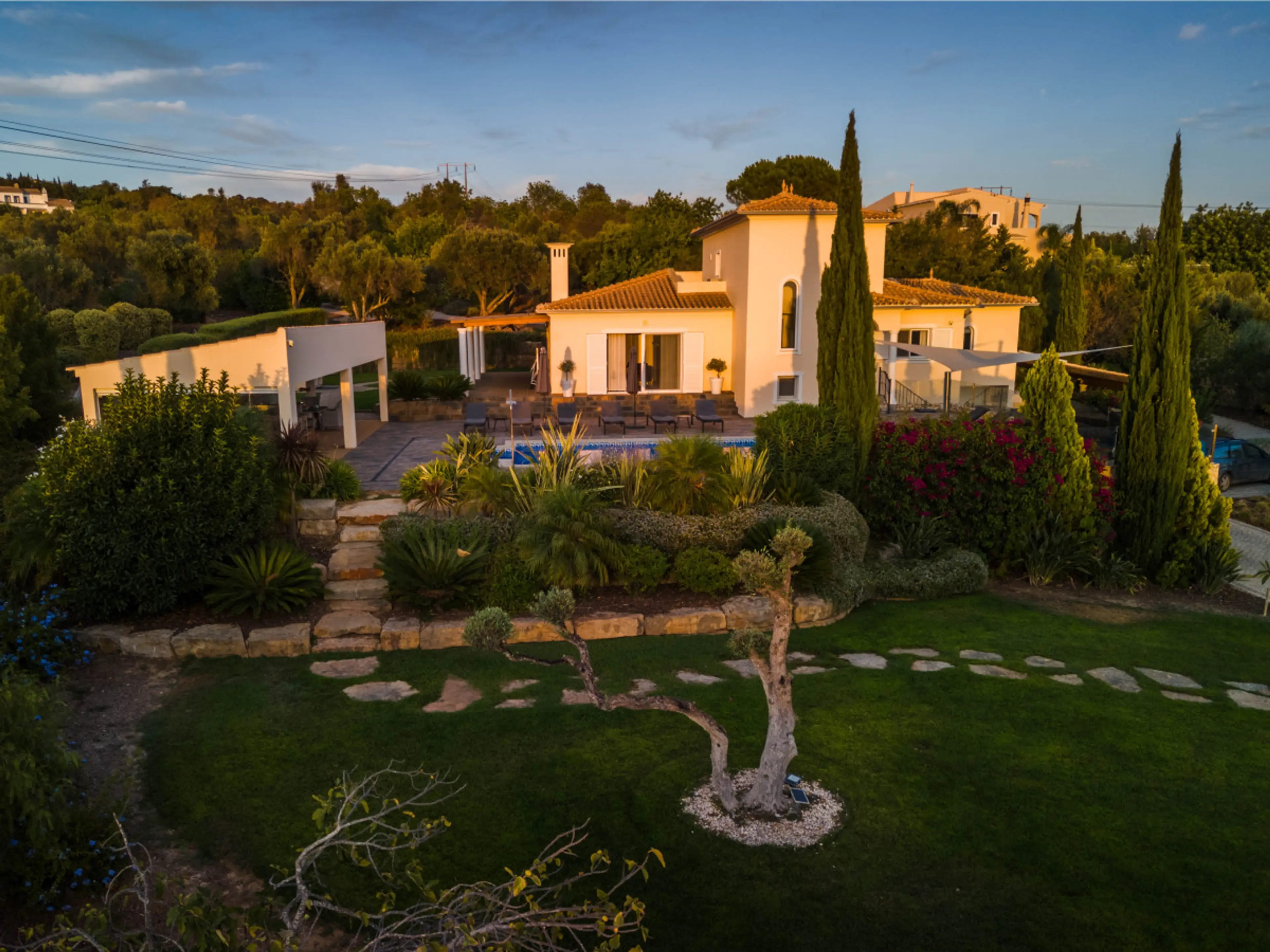 our family of 6 adults and 5 children under 7 in the most perfect setting and environmentvecleanliness functionalitymagnificent gardens for hide and seek / treasure huntabsence of crawling stuffimpressively equipped kitchenthe outside dining arrangements36 outside and villa still cool with no aircon/ doors open and breezesafe pool with security fence erected on requestminutes from Loulevery quiet ( despite our noise)-vewould look its best if external glass was cleaned - bar / pool surroundbbq area would benefit from upgrade I guess like many potential guests ,the proximity of the animal rescue centre in the next property could deter them. Dont. Apart from feeding time it was all quiet and unnoticeable to us.Access was initially problematic coming directly through Loule and into a narrow road. Quickly worked out alternatives with the favoured route via rua Telheidro around the convent. a wonderful multi genertional holiday location that went far too quickly